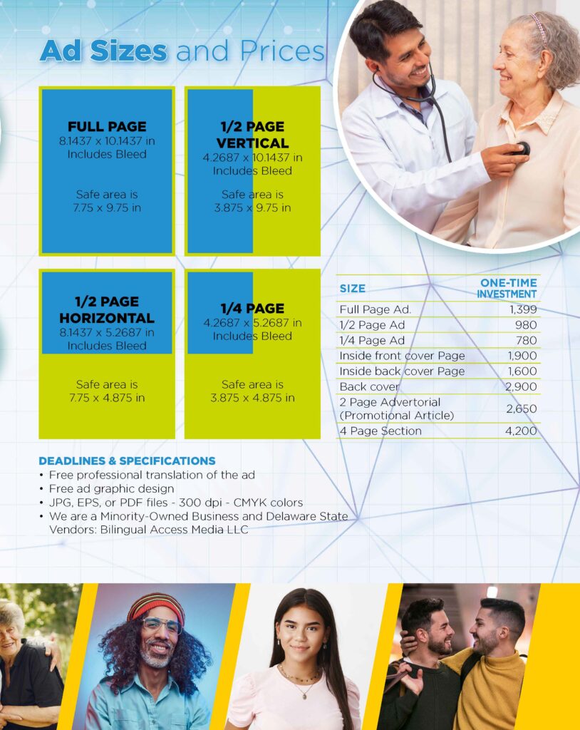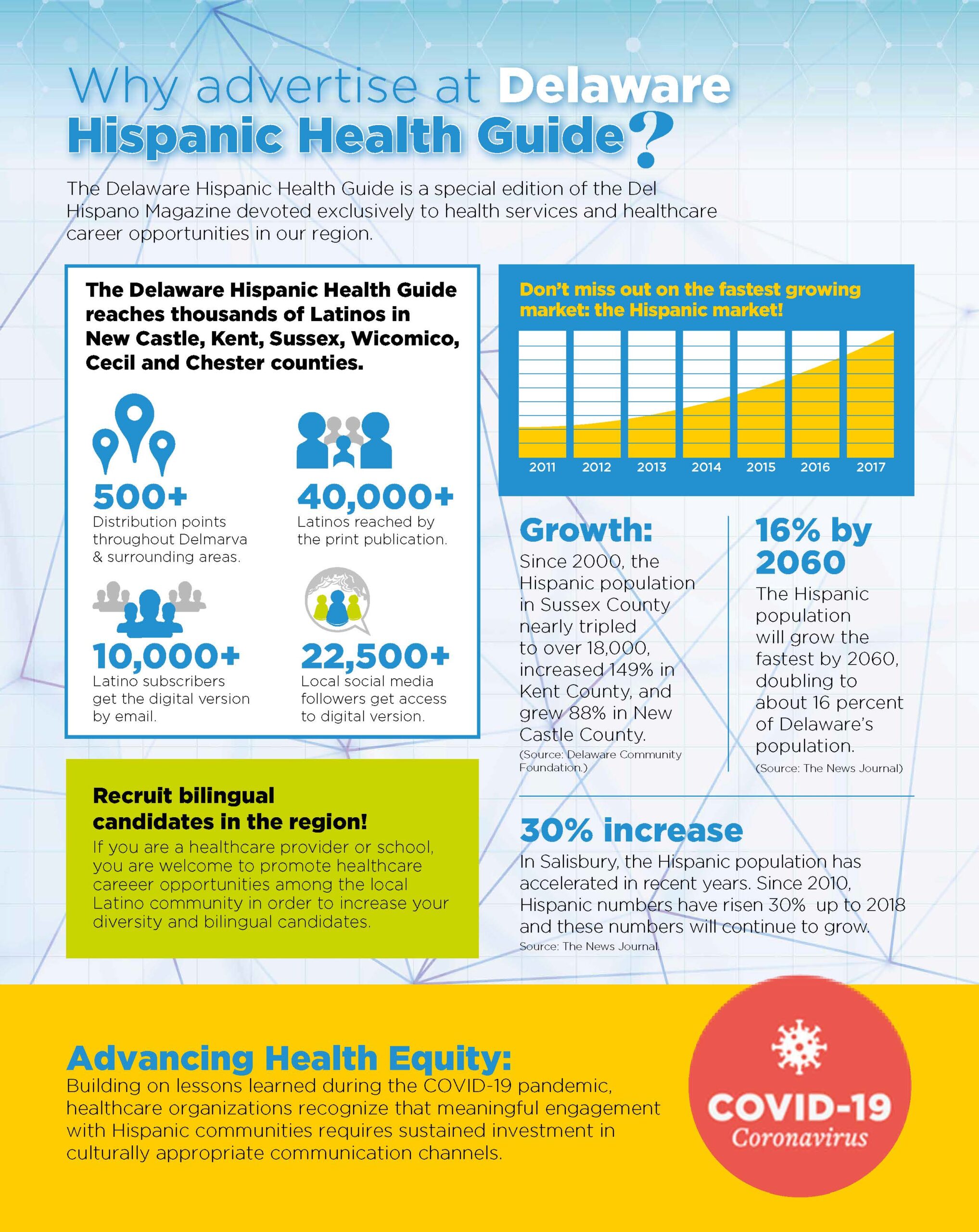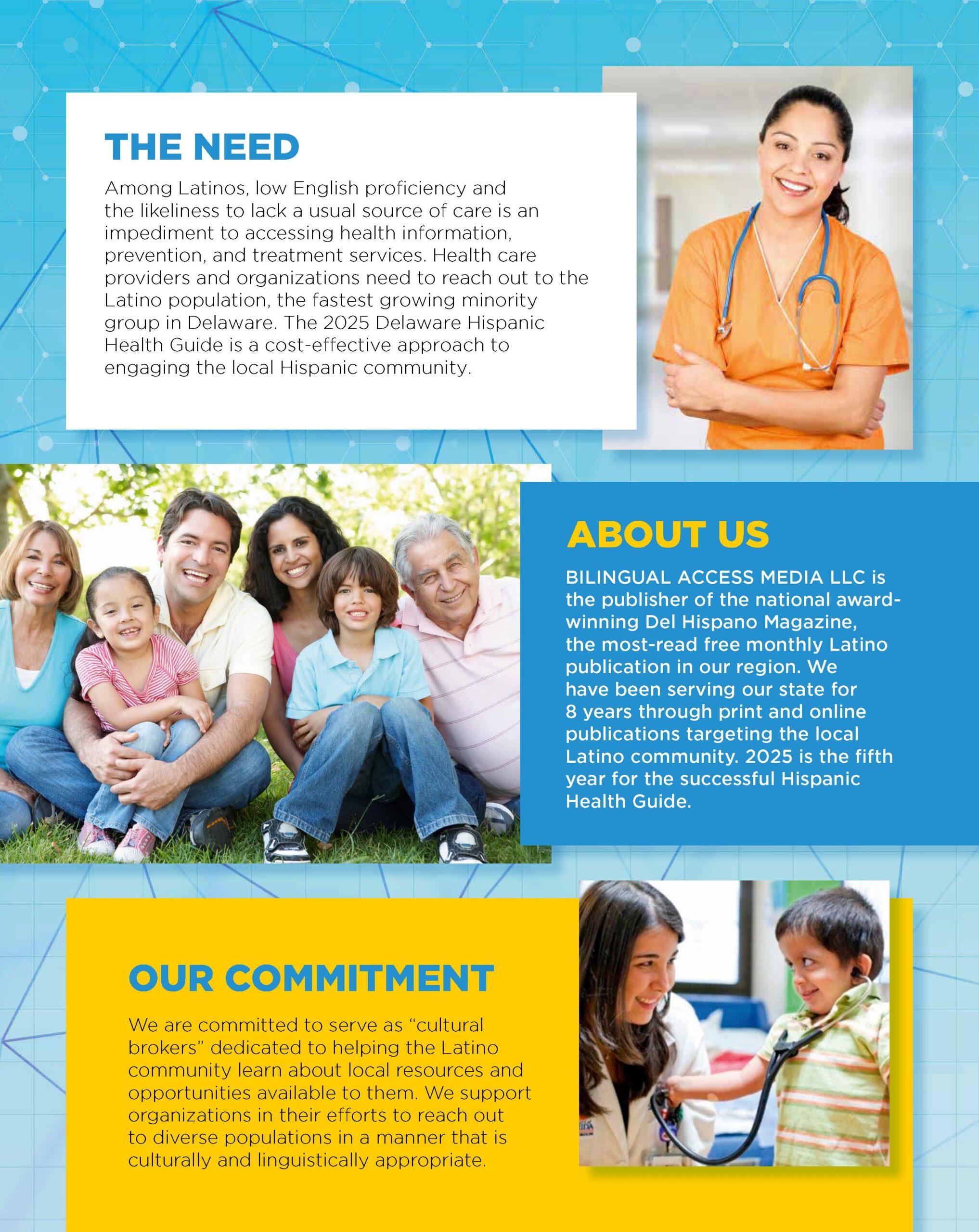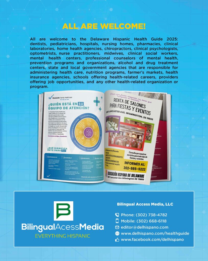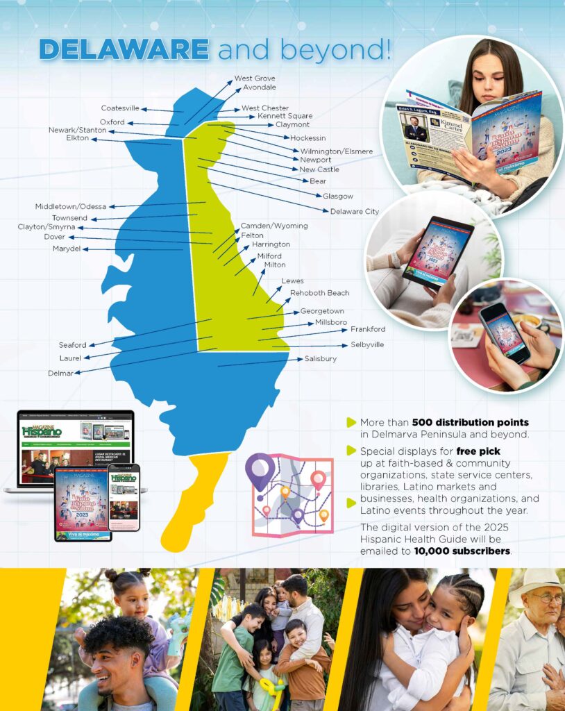 Thank you for your interest in the 2025 Delaware Hispanic Health Guide, the annual Latino publication for healthcare providers and health-related community resources! You can reach us at 302-668-6118 or editor@delhispano.com.